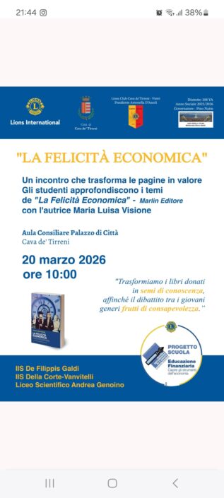 In concomitanza con la Global Money week dell'OCSE il Lions Club Cava de’ Tirreni – Vietri ha organizzato il service in materia di educazione finanziaria denominato "La felicità economica"